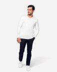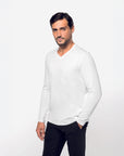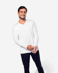 Optez pour Le T-shirt Col V Manches Longues Supima®, une pièce de qualité supérieure qui combine confort et élégance. Confectionné en coton Supima® américain, réputé pour sa fibre extra longue, ce t-shirt offre à la fois résistance et douceur. Sa coupe droite et sa construction coupée cousue garantissent une silhouette soignée et une grande durabilité.